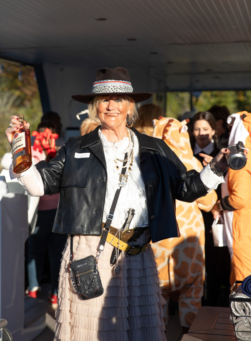 Taking off from the Keowee Vineyards Lakehouse, members, staff, and boat crew alike were dressed to the nines in Halloween costumes fit for the occasion. Fog, spooky music, black lights, and more awaited event attendees as they boarded the boat, where they were greeted with fresh cocktails, fun bites, and plentiful Halloween decor, including custom-made “Wanted” posters featuring various members of the Keowee Vineyards staff. The attendees mingled and showed off their costumes for each other while waiting for the cruise to begin.