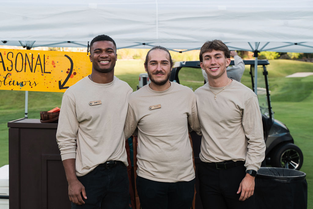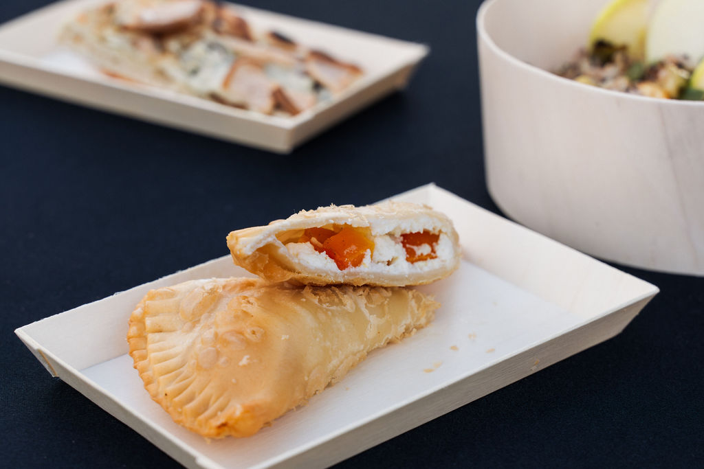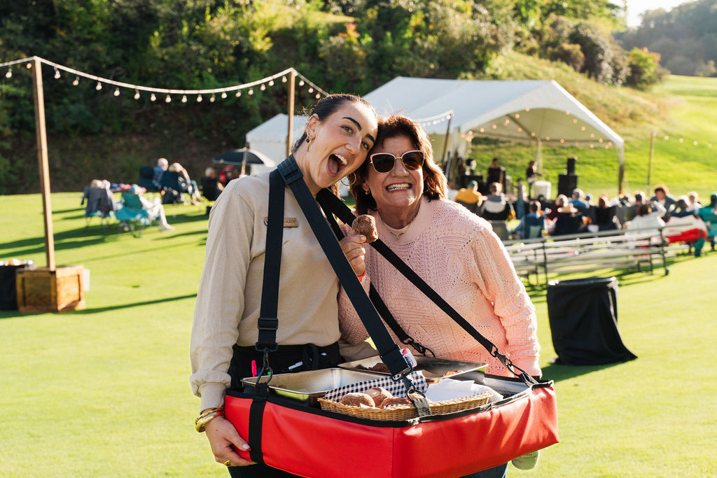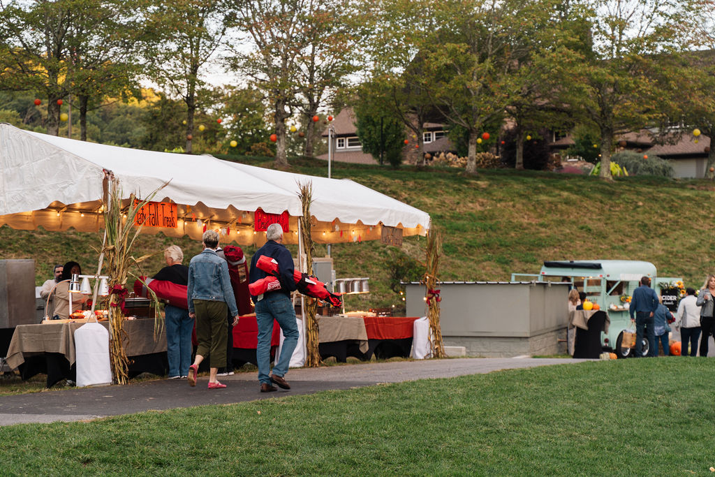The culinary team perfectly encapsulated the autumnal theme with delicious fall-inspired food and beverages. Stations featured smoked turkey legs, pear and gorgonzola flatbread, cider-braised pork sliders, and hand pies filled with delicious seasonal flavors. The fresh donuts and homemade apple butter, in particular, were a hit among event attendees, the delicious flavors pairing perfectly with an evening under the stars.