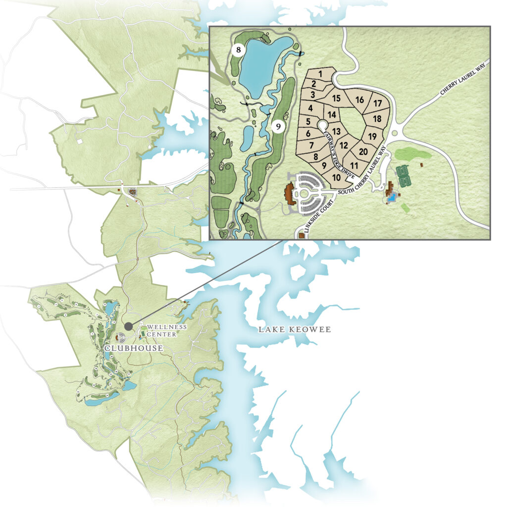 Fairway’s Edge at Keowee Falls brings a new vision to life—a curated collection of 20 homesites, ranging from 0.61 to 1.13 acres, bordering the spectacular Jack Nicklaus Signature golf course. Surrounded by lush forest and neighboring the clubhouse and wellness center, this enclave features semi-custom homes, a central putting green, and easy access to nearby Lake Keowee.