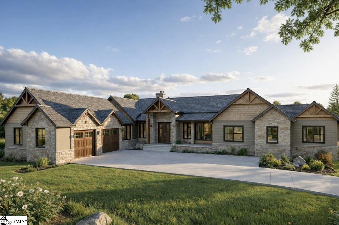Perched to capture sweeping, long-distance views while also capturing hills and granite rock face, this thoughtfully designed residence crafted by Kamanski Construction offers the rare combination of elevated architecture and the ease of refined one-level living. With approximately 4,266 square feet of living space, the plan balances comfort, luxury, and seamless indoor-outdoor connection. Expansive windows frame the ever-changing vistas, while the open-concept great room and kitchen, accented with tray ceilings and a statement fireplace, create an inviting setting for both intimate evenings and effortless entertaining. A climate-controlled wine room adds a sophisticated touch, ideal for collectors and hosts alike. The primary suite is a true retreat, encompassing approximately 775 square feet of private luxury. Designed as a sanctuary, it features its own fireplace and a spa-inspired bath, offering a serene escape at day's end. Outdoor living is equally compelling. A spacious patio with fireplace, fully appointed outdoor kitchen, and a screened porch, with the option for retractable screens, invite year-round enjoyment of The Glassy lifestyle. Whether dining al fresco, relaxing fireside, or simply taking in the panoramic mountain backdrop, every space is oriented to celebrate the views. Additional highlights include a dedicated home gym, flexible office space, generous secondary bedrooms, and an oversized two-car garage. Plans are thoughtfully designed yet flexible, allowing for customization to suit individual preferences. A rare opportunity to build a legacy home that pairs timeless mountain elegance with modern comfort'all set against the breathtaking horizon of the Upstate below. Home to be constructed upon execution of construction contract and ARB approval. A Club membership at The Cliffs is available for purchase with this property giving you access to all seven communities.